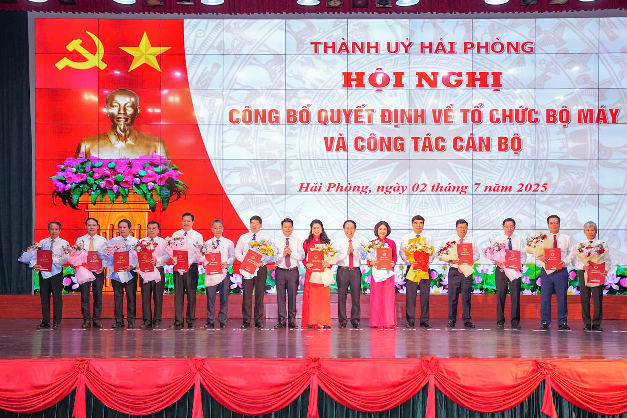 Theo đó, Quyết định thành lập Ban Tổ chức Thành uỷ trên cơ sở hợp nhất Ban Tổ chức Tỉnh uỷ Hải Dương và Ban Tổ chức Thành uỷ Hải Phòng. Đồng chí Lê Trí Vũ, Ủy viên Ban Thường vụ Thành ủy, Trưởng Ban Tổ chức Thành ủy Hải Phòng là Trưởng ban; đồng chí Lê Anh Dũng, Ủy viên Thành ủy, Phó Trưởng Ban Tổ chức Tỉnh ủy Hải Dương, là Phó Trưởng ban Thường trực. Các Phó Trưởng ban: đồng chí Nguyễn Văn Tuấn, Ủy viên Thành ủy, Chánh Văn phòng Thành ủy Hải Phòng; đồng chí Đỗ Văn Điệp, Phó Trưởng Ban Tổ chức Thành ủy Hải Phòng; đồng chí Phạm Quang Hiển, Phó Trưởng Ban Tổ chức Thành ủy Hải Phòng; đồng chí Trương Đức San, Phó Trưởng Ban Tổ chức Tỉnh ủy Hải Dương; đồng chí Phan Nhật Thanh, Phó Trưởng Ban Tổ chức Tỉnh ủy Hải Dương; đồng chí Nguyễn Hồng Vinh, Phó Trưởng Ban Tổ chức Thành ủy Hải Phòng.