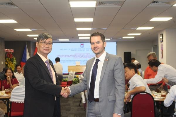 Chủ tịch HUFO Vương Đức Hoàng Quân chụp hình lưu niệm với Phó Đại sứ CH Czech Lukas Musil.