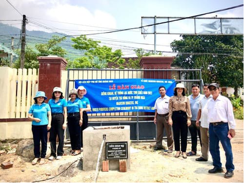 Hội LHPN tỉnh Quảng Ngãi và Tổ chức Madison Quakers, Inc (MQI) vừa tổ chức Lễ bàn giao giếng khoan, hệ thống lọc nước tinh khiết tại xã Trà Giang, huyện Trà Bồng, tỉnh Quảng Ngãi - (Ảnh: Văn phòng Hội LHPN tỉnh Quảng Ngãi).
