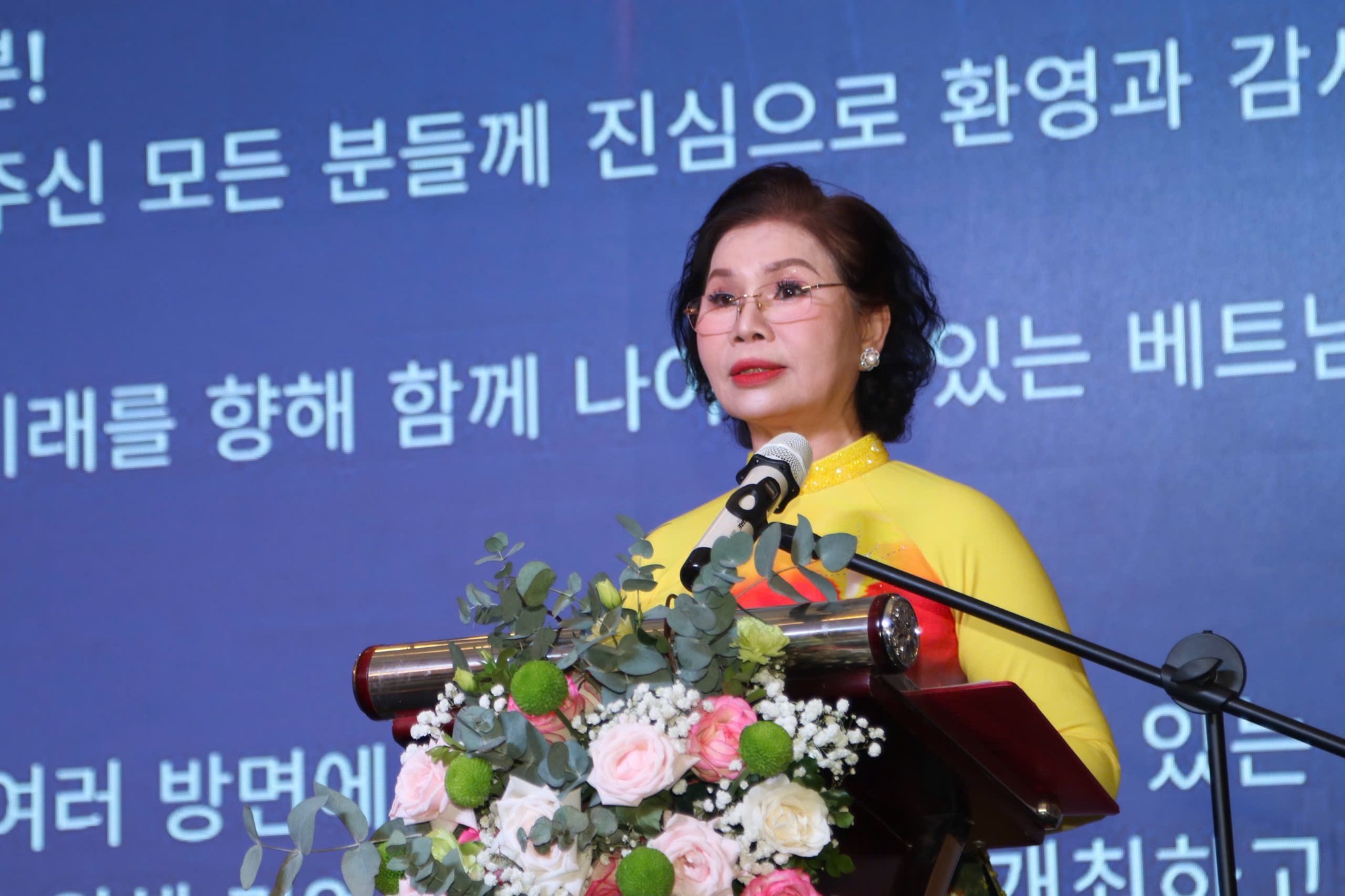 Bà Nguyễn Thị Minh Hà, Chủ tịch CLB doanh nghiệp Việt Nam Hàn Quốc phát biểu khai mạc