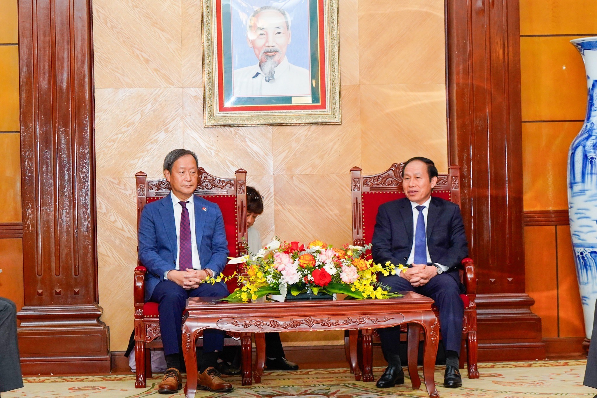 Đồng chí Bí thư Thành uỷ bày tỏ vui mừng được tiếp và làm việc với Phó Chủ tịch Thường trực cấp cao Văn phòng Cơ quan hợp tác phát triển quốc tế Nhật Bản (JICA).