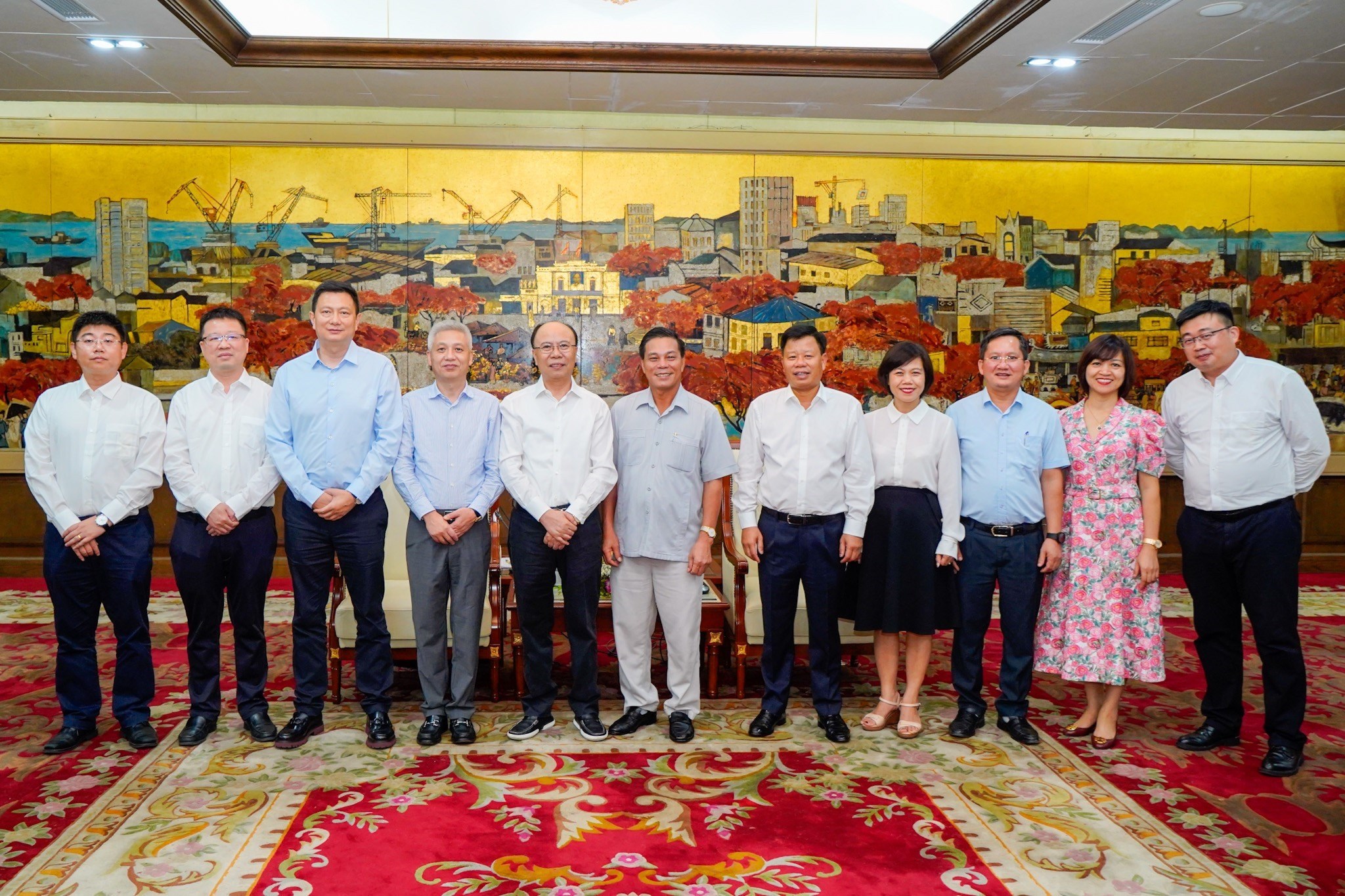 Tại buổi làm việc, Chủ tịch UBND thành phố thông tin nhanh về tình hình kinh tế của thành phố. Trong 06 tháng đầu năm 2023, tổng thu hút FDI trên địa bàn thành phố đạt 1,98 tỷ USD, bằng 165% so với cùng kỳ năm 2022, đạt 99% kế hoạch năm. Lũy kế đến nay, trên địa bàn thành phố có 872 dự án đầu tư có vốn đầu tư nước ngoài còn hiệu lực với tổng số vốn đầu tư đăng ký 26,15 tỷ USD. Trong đó, có 146 dự án đầu tư đến từ các nhà đầu tư Trung Quốc đại lục với tổng vốn đầu tư đăng ký đạt xấp xỉ 1,1 tỷ USD. Trong số 42 quốc gia và vùng lãnh thổ đầu tư vào thành phố, Trung Quốc đại lục đứng thứ 3 về số dự án và đứng thứ 6 về tổng vốn đầu tư.