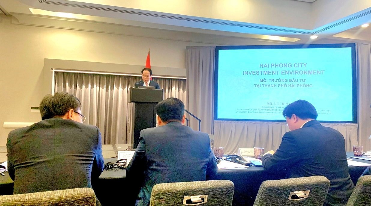Phát biểu tại Hội nghị, đồng chí Bí thư Thành ủy Lê Tiến Châu giới thiệu tiềm năng, lợi thế, định hướng chiến lược và cam kết mạnh mẽ của thành phố Hải Phòng đối với các nhà đầu tư, nhất là các đối tác Hoa Kỳ đến tìm hiểu cơ hội hợp tác và đầu tư. Đồng chí Bí thư Thành ủy cho biết, Hải Phòng là thành phố Cảng biển, là một trong ít địa phương có đầu mối giao thông trọng điểm quốc gia, hội tụ đủ 5 loại hình giao thông đồng bộ, có tính kết nối với khu vực và thế giới. Hải Phòng đang xây dựng hệ thống Khu kinh tế, Khu công nghiệp với các ưu thế vượt trội như: Khu kinh tế Đình Vũ – Cát Hải rộng hơn 22.000 ha, với nhiều ưu đãi về thuế, thủ tục và kết nối đồng bộ với cụm cảng nước sâu quốc tế Lạch Huyện. Đây là một trong những cảng lớn của Việt Nam, có thể đón tàu có tải trọng 200.000 tấn và liên kết đa phương thức trong mạng lưới vận tải quốc tế. Thành phố Hải Phòng cũng sở hữu nguồn nhân lực chất lượng cao, được đào tạo bài bản, làm việc chuyên nghiệp. Với 4 trường Đại học và hơn 60 cơ sở đào tạo nghề trên địa bàn thành phố có thể cung cấp lực lượng lớn lao động lành nghề làm việc trong các doanh nghiệp đầu tư. Đến với Hải Phòng, nhà đầu tư cũng được tận hưởng cuộc sống với những tiện ích phong phú, hệ thống trường học, bệnh viện đạt tiêu chuẩn quốc tế, trung tâm thương mại, các khu vực giải trí và du lịch hấp dẫn...