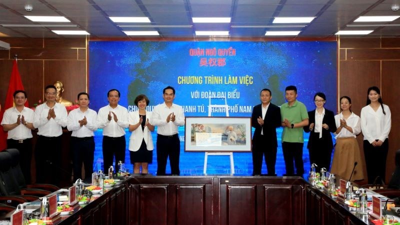 Buổi làm việc giữa Đoàn đại biểu chính quyền khu Thanh Tú, thành phố Nam Ninh, tỉnh Quảng Tây (Trung Quốc) với lãnh đạo quận Ngô Quyền, thành phố Hải Phòng. (Ảnh: An ninh Hải Phòng)