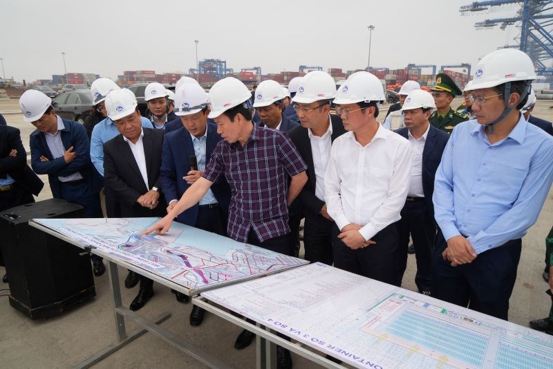 Đồng chí Bí thư Thành ủy Lê Tiến Châu kiểm tra tiến độ xây dựng các bến  số 3, số 4 cảng Lạch Huyện do Công ty CP Cảng Hải Phòng là chủ đầu tư
