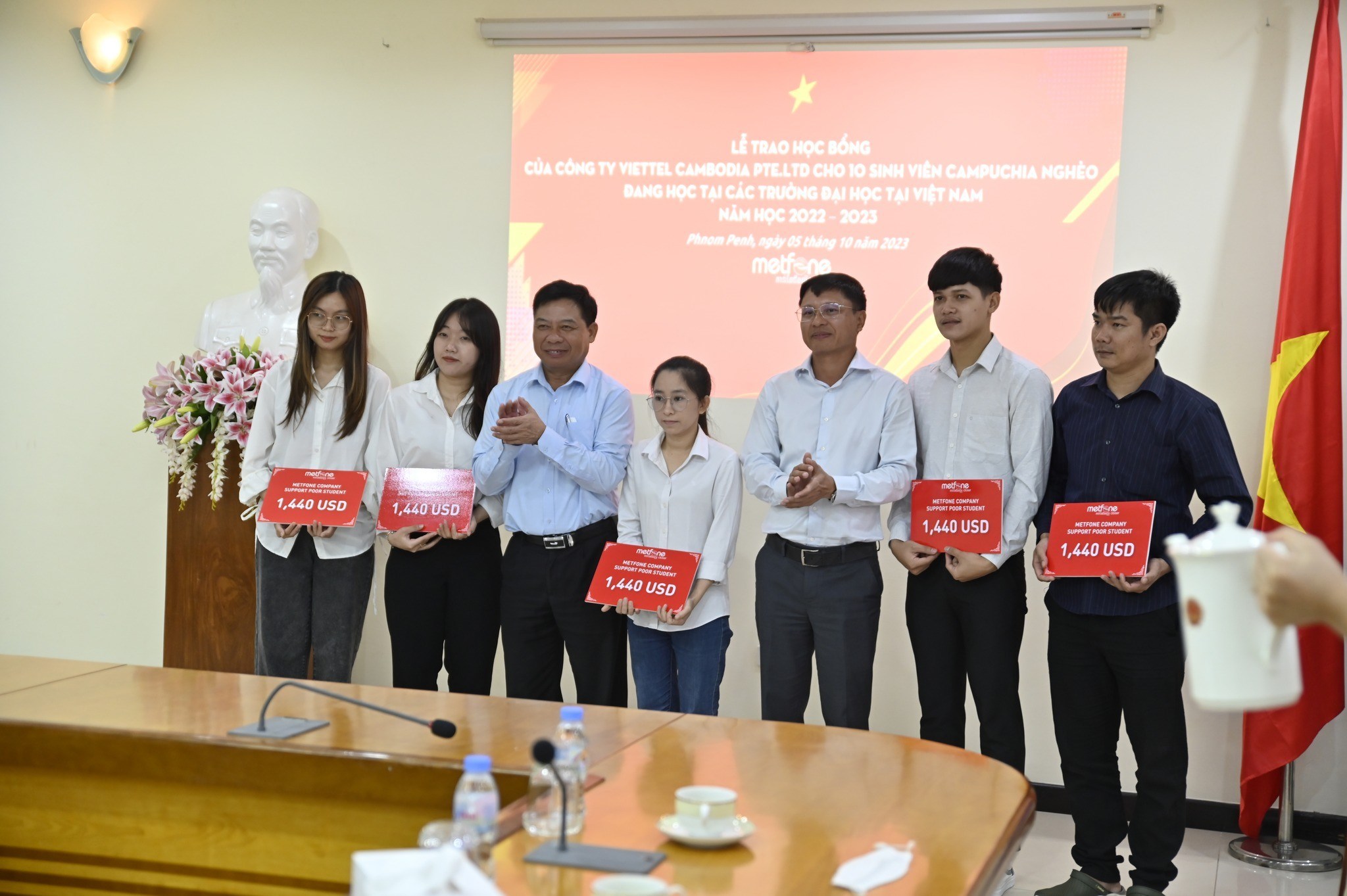 Đầu tháng 10/2023, tại Phnom Penh (Campuchia), Công ty Viettel Cambodia (Metfone) thuộc Tập đoàn Công nghiệp - Viễn thông Quân đội (Viettel) đã trao tặng 10 suất học bổng cho các sinh viên Campuchia có hoàn cảnh khó khăn, đạt thành tích tốt đang theo học tại các trường đại học của Việt Nam. Mỗi suất học bổng trị giá 1.440 USD.