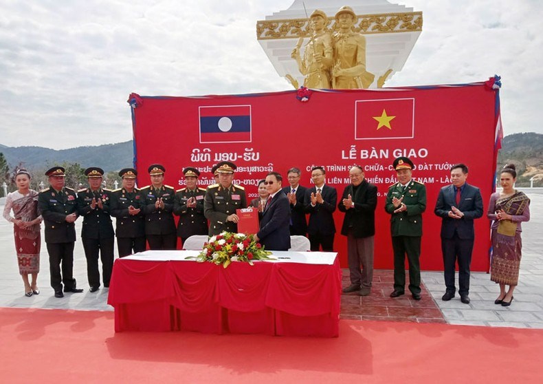 Sau 3 tháng thi công với kinh phí gần 7 tỷ kíp (đơn vị tiền tệ của Lào), công trình Đài tưởng niệm Liên minh chiến đấu Lào - Việt Nam tại tỉnh Xiengkhouang (Lào) vừa hoàn thành công tác trùng tu và được bàn giao lại cho Tổ công tác đặc biệt của Chính phủ Lào quản lý.