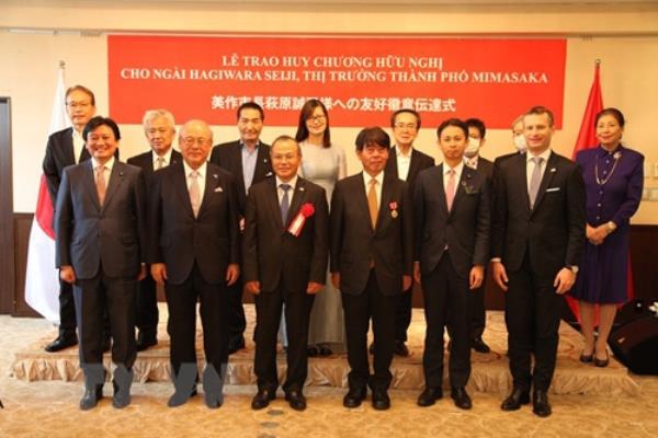 Mới đây, tại thủ đô Tokyo, thừa ủy quyền của Chủ tịch nước Cộng hòa Xã hội Chủ nghĩa Việt Nam, Đại sứ Việt Nam tại Nhật Bản Vũ Hồng Nam đã trao Huy chương Hữu nghị cho ông Seiji Hagiwara, Thị trưởng thành phố Mimasaka thuộc tỉnh Okayama của Nhật Bản.