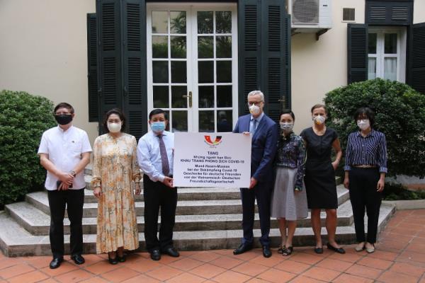 Trước đó, ngày 6/5, tại Đại sứ quán CHLB Đức tại Hà Nội, Hội Hữu nghị Việt Nam - Đức đã tổ chức trao tặng nước Đức 80.000 khẩu trang chất lượng cao.