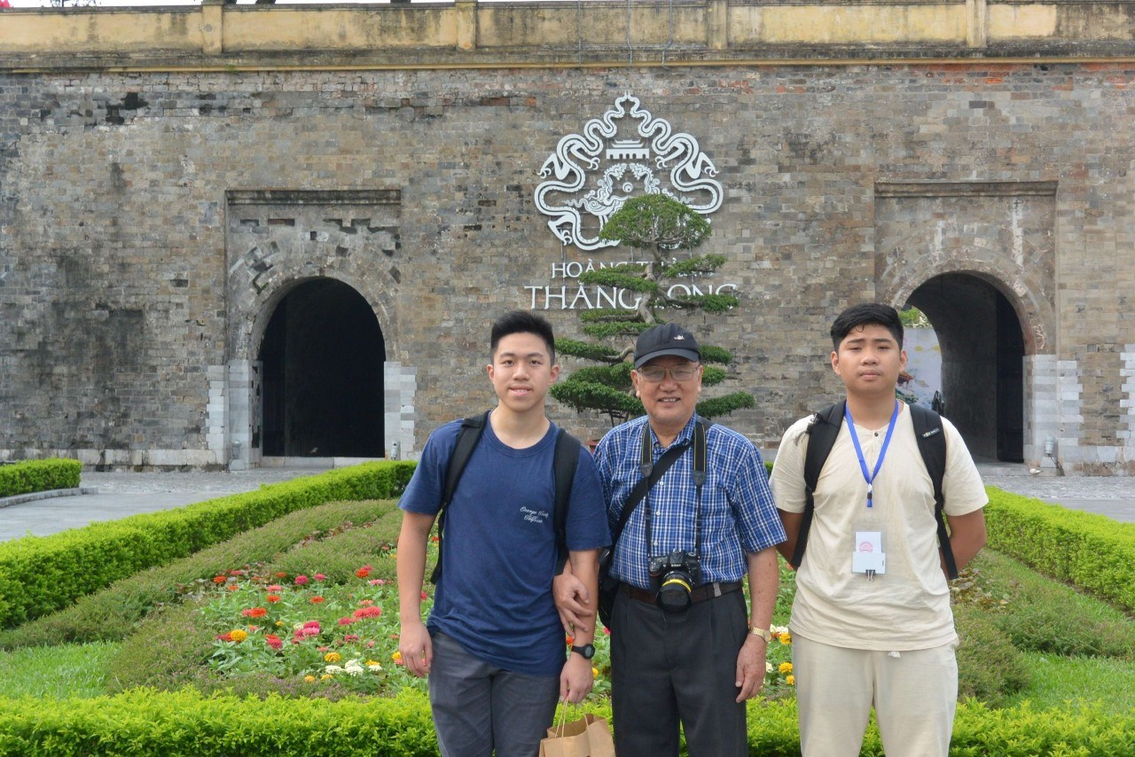 Kyren (trái) được ông nội của bạn Long Vũ đưa đi tham quan Hà Nội.
