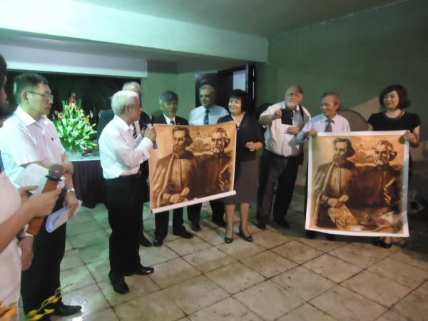 Chủ tịch Liên đoàn các nhà giáo Bungari trao món quà là bức ảnh hai Thánh Kiril và Metodi – sáng lập chữ viết Slavơ