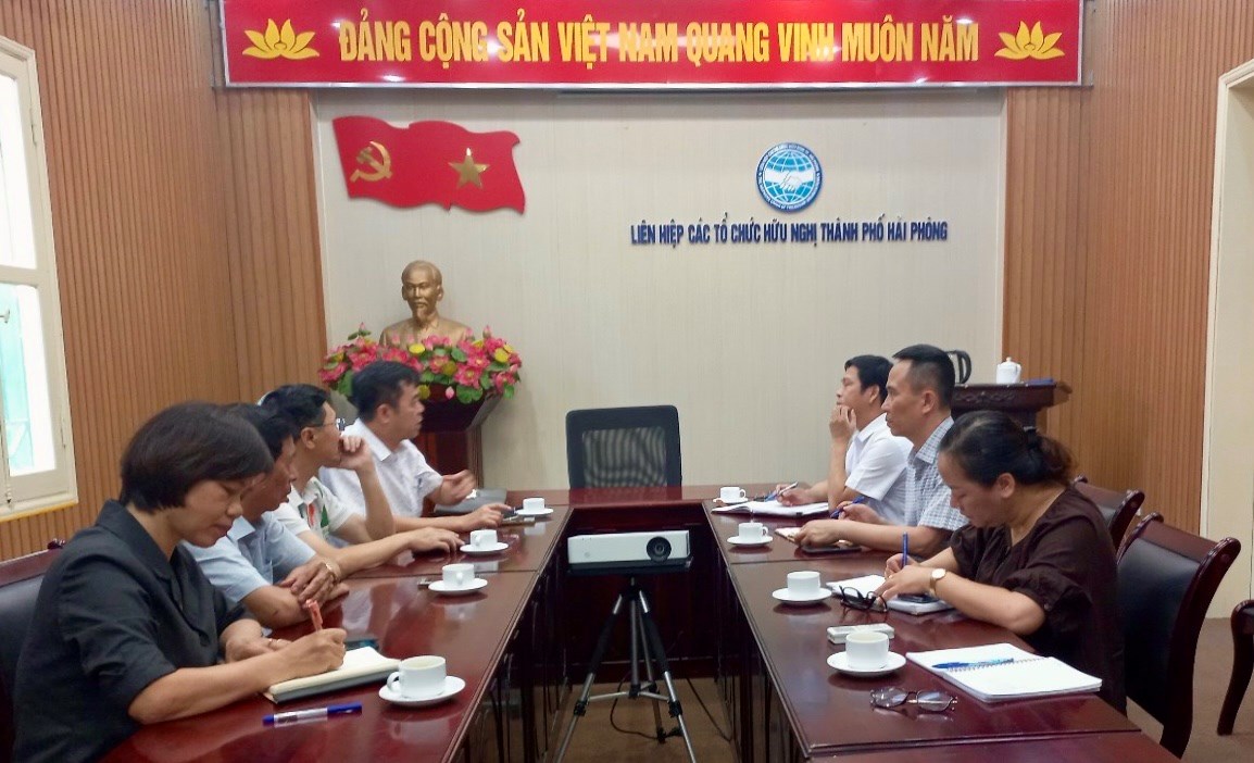 Chiều 08/5, Liên hiệp Các tổ chức hữu nghị thành phố và Hội hữu nghị Việt – Mỹ thành phố có buổi làm việc trao đổi công tác kiện toàn nhân sự Hội và bàn các giải pháp thúc đẩy hoạt động. Tham dự buổi làm việc, về phía Liên hiệp có các đồng chí: Nguyễn Văn Thụ, Chủ tịch Liên hiệp; Hà Văn Thủy, Tổng Thư ký kiêm Chánh Văn phòng Liên hiệp. Về phía Hội hữu nghị Việt – Mỹ có các đồng chí: Phạm Văn Thức, Chủ tịch Hội, Phí Văn Lực, Phó Chủ tịch Hội; Phí Văn Dực, Phó Chủ tịch Hội. Buổi làm việc còn có sự tham dự của đồng chí Nguyễn Thị Bích Dung, Giám đốc Sở Ngoại vụ.
